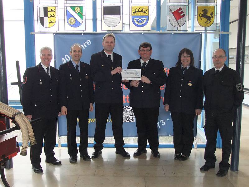 Zwei Jubilare trafen sich am 25.03.2013 im Foyer der Landesfeuerwehrschule Baden-Württemberg. Anlässlich des 40-jährigen Jubiläums der AGWF konnte Vorsitzender Andreas Rudlof einen Scheck über 500,00 € an den Landesjugendleiter Thomas Häfele übergeben.