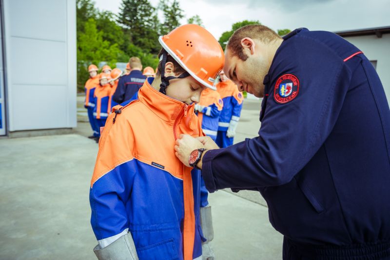 Die Jugendlichen legten zeitgleich ebenso die Prüfungen zur ersten Stufe der Jugendflamme ab. Hier galt es, diverse Knoten und Stiche der Feuerwehr fehlerfrei anzulegen und Wasserentnahmestellen ausfindig zu machen. Außerdem mussten die Teilnehmer ihr Wissen rund um Schläuche und wasserführende Armaturen unter Beweis stellen und anhand praktischer Beispiele eine Notfallmeldung abgeben.