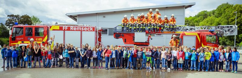 Das mittlerweile sehr erfolgreich etablierte Grundschulprojekt der Jugendfeuerwehr Remseck am Neckar wurde dieses Jahr in enger Zusammenarbeit mit vierten Klassen aus den Stadtteilen Aldingen und Neckargröningen durchgeführt. Nach einer sehr actionreichen Einsatzübung, welche auch gleichzeitig durch die Schulleitung zur Gebäuderäumung genutzt wurde, konnten die 86 Schülerinnen und Schüler an insgesamt zehn vorbereiteten Stationen rund um das Haus der Feuerwehr in Aldingen das Thema (Jugend-)Feuerwehr intensiv kennenlernen. Die Möglichkeiten gingen vom traditionellen Fahren im Feuerwehrauto, über die Brandbekämpfung mit Feuerlöschern oder der Fragerunde mit dem Ehrenkommandanten und Vorstellung der weiteren Aktivitäten den ganzen Vormittag durch das weite Feld des Feuerwehrwesens. Insgesamt nahmen sich über 14 aktive Feuerwehrangehörige ausreichend am Vormittag Zeit um für weiteren Nachwuchs der Floriansjünger frühzeitig zu heranzuführen. Im weiteren Verlauf des Projekts dürfen die interessierten Kinder nun an den Übungsabenden bis zu den Sommerferien das Schnuppern intensivieren und dann ab September zusammen mit den bereits aktiven Jugendfeuerwehrmitgliedern in den regulären Übungsbetrieb mit einsteigen. Aus Sicht des Jugendwarts Erik Hörnlen ist dies aktuell eine sehr effektive Möglichkeit, neue Mitglieder früh auf das sehr sinnvolle Hobby und Ehrenamt aufmerksam zu machen. Viele Freundschaften werden nach der vierten Klasse auf der Schulischen Laufbahn getrennt und haben dann nach wie vor einen gemeinsamen Treffpunkt. Bestenfalls bringen Sie dann noch neue Jugendliche aus den weiterführenden Klassen gleich mit zum nächsten Übungsabend. Das Projekt kann die Jugendfeuerwehr natürlich nicht alleine stemmen und bedankt natürlich an dieser Stelle bei den Unterstützern aus den Reihen der Aktiven Wehr, die in dieser Projektphase tatkräftig mit unterstützen.