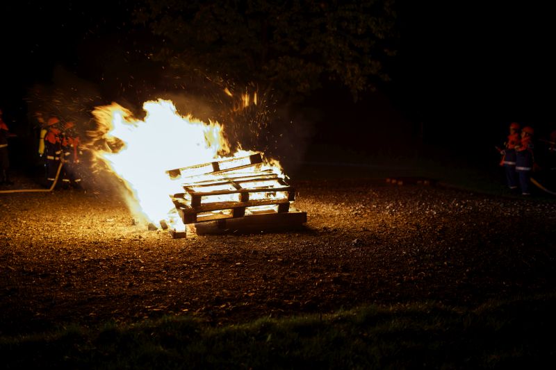 Wieder im Feuerwehrhaus angekommen, gab es einen Großeinsatz in einer Verrauchten Halle mit 5 ''Verletzten''. Alle wurden in Sicherheit gebracht. Dann gab es Abendessen. Uns stand es frei zu schlafen oder noch zu quatschen aber es würde noch ein Einsatz geben das wussten wir. Der letzte Einsatz des Tages war ein Paletten Brand.