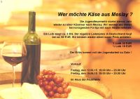 Traditionsgemäß wird auch in diesem Jahr wieder eine Delegation der Jugendfeuerwehr in die französische Partnerstadt Meslay-du-Maine fahren und auf dem Rückweg leckeren Fol-Epi Käse mitbringen. Details sind dem Bild zu entnehmen.