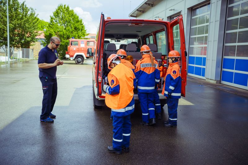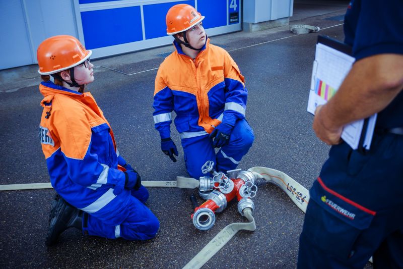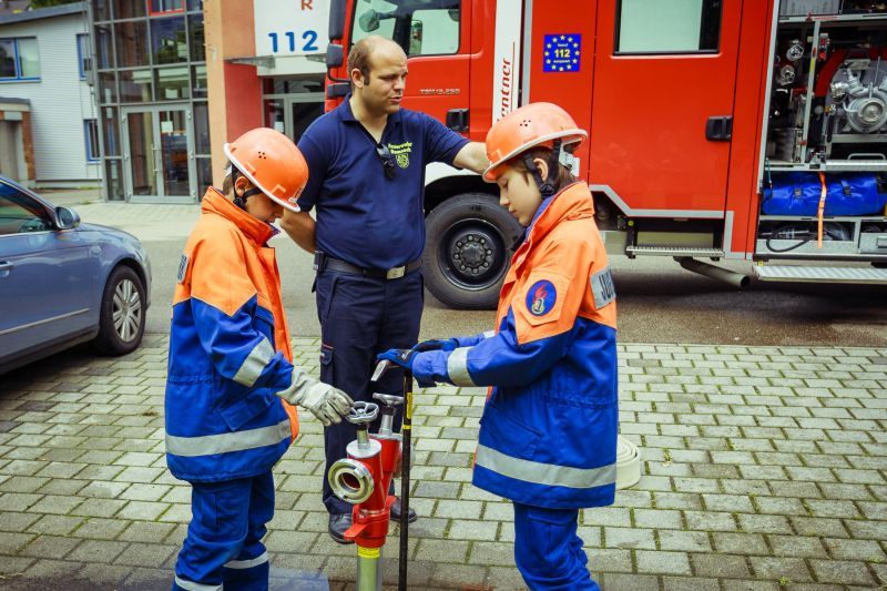 Die Jugendlichen legten zeitgleich ebenso die Prüfungen zur ersten Stufe der Jugendflamme ab. Hier galt es, diverse Knoten und Stiche der Feuerwehr fehlerfrei anzulegen und Wasserentnahmestellen ausfindig zu machen. Außerdem mussten die Teilnehmer ihr Wissen rund um Schläuche und wasserführende Armaturen unter Beweis stellen und anhand praktischer Beispiele eine Notfallmeldung abgeben.